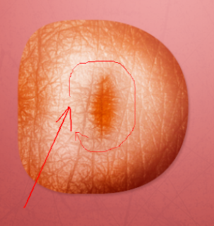 Bu seçimi kopyalayıp çalışmamıza yapıştıralım. Şimdi boyutunu küçülterek parmağın üzerine getirelim ve Edit>Transform>Flip Horizantal yapalım. Ardından aynı yerden birde flip vertical yapalım. Şimdi Ctrl tuşu basılı iken I katmanımızın küçük resmine tıklayalım ve DEL tuşuna basalım. Erase tool u seçelim ve etimizi parmakla temas eden yeri dışındaki kısımlarını temizleyelim. En son aşağı resimdeki gibi burn tool u seçerek karartma uygulayalım.