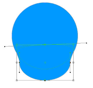 Saçlar için yeni bir katman oluşturalım. Foreground rengimizi #0099FF yapalım. Araç kutusundan ellipse tool u seçelim bir daire çizelim. Tekrar araç kutusundan direction selection tool u seçerek aşağı resimdeki gibi şekillendirelim.