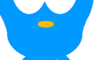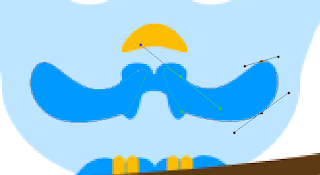 Foreground rengimizi #0099FF yapalım ve eller için aşağıdaki şekilleri çizelim. Bundan sonra çizimleri göstereceğim zaten nasıl ve hangi araçlarla yaptığımızı yeterince tekrar ettik önemli noktalar olursa bunu vurgularım. Şimdi yeni bir katman açalım bir daire çizelim ve aşağıdaki gibi şekillendirelim. Gövde katmanının görünürlüğünü düşüreceğim daha iyi anlaşılsın diye.