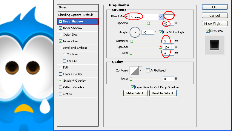 Şimdi göz yaşımızı seçelim arkadaşlar ve aşağıdaki adımları blending options una uygulayalım.