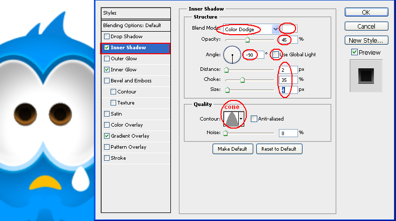 Şimdi birazda gagayla ilgilenelim. Gaga katmanını seçerek aşağıdaki adımları uygulayalım.