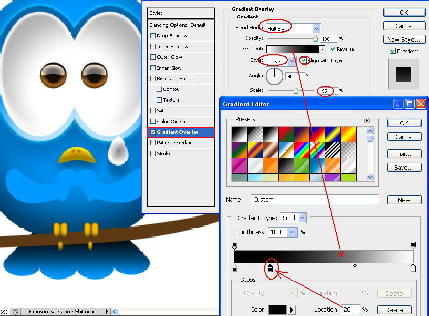 Şimdi arkadaşlar çizim işlemlerimiz bitti sayılır ve renklendirmeye geçebiliriz. Gövde katmanımızı seçelim ve blending options una girerek aşağıdaki adımı uygulayalım.