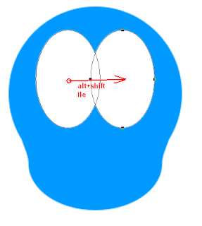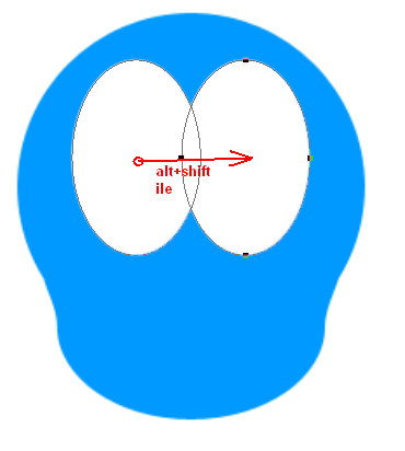 Bu katmanımızın adını gövde olarak değiştirelim ki karışmasın. Yeni bir katman oluşturun. Foreground rengini beyaz yapalım ve gözler için araç kutusundan ellipse tool u seçelim. Şimdi gövde üzerinde gözü çizelim ve aşağı resimdeki gibi gözü çizdikten sonra araç kutusundan path selection tool u seçerek diğer gözüde yanına kaydıralım.