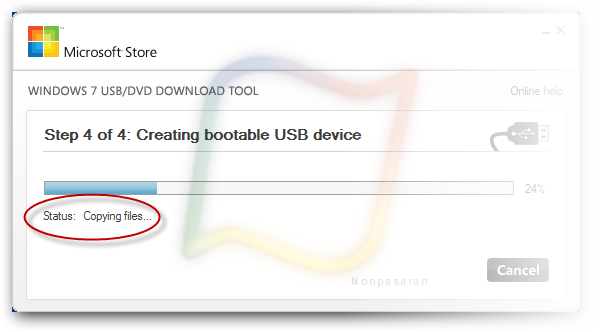 ardından Windows 7 ISO dosyasının içeriği USB flash sürücüye kopyalanacak.